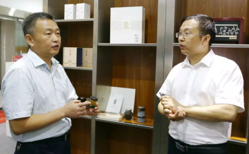 圖為領(lǐng)導(dǎo)一行參觀園區(qū)優(yōu)秀成長型企業(yè)——宜賓夢幻森林食品有限責(zé)任公司